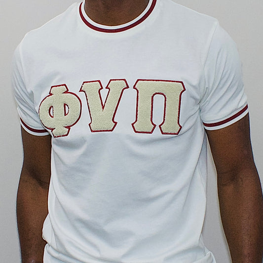 Chenille Phi Nu Pi T Shirt - Cream & Crimson