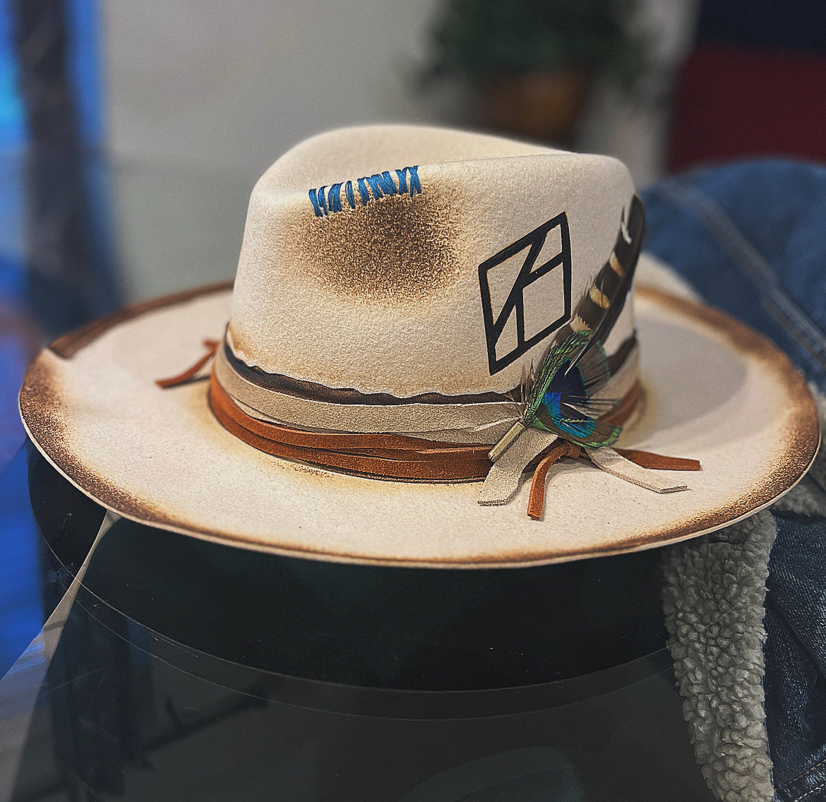 Floating K Fedora. One size with adjustable Velcro Strap . 3 3/4” brim