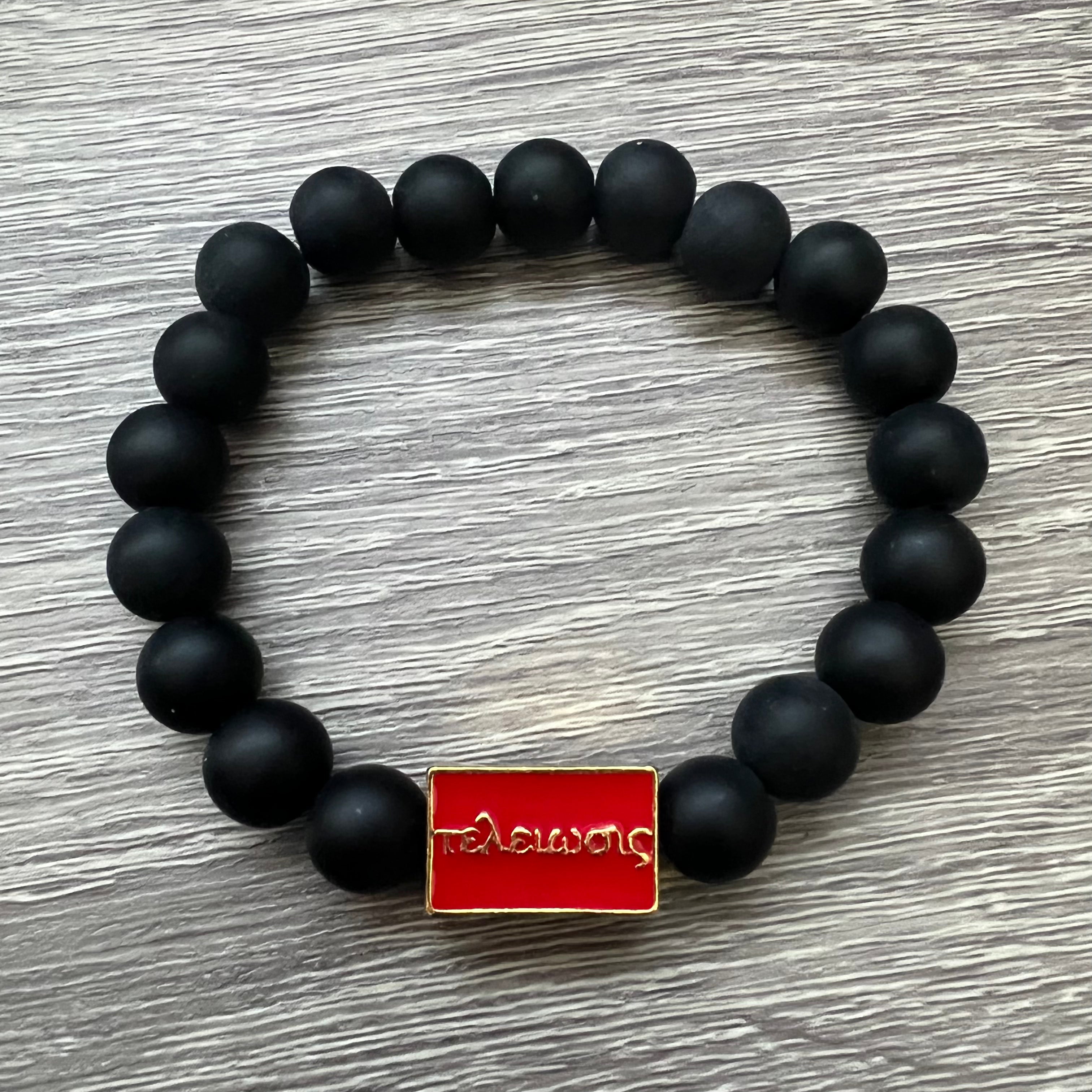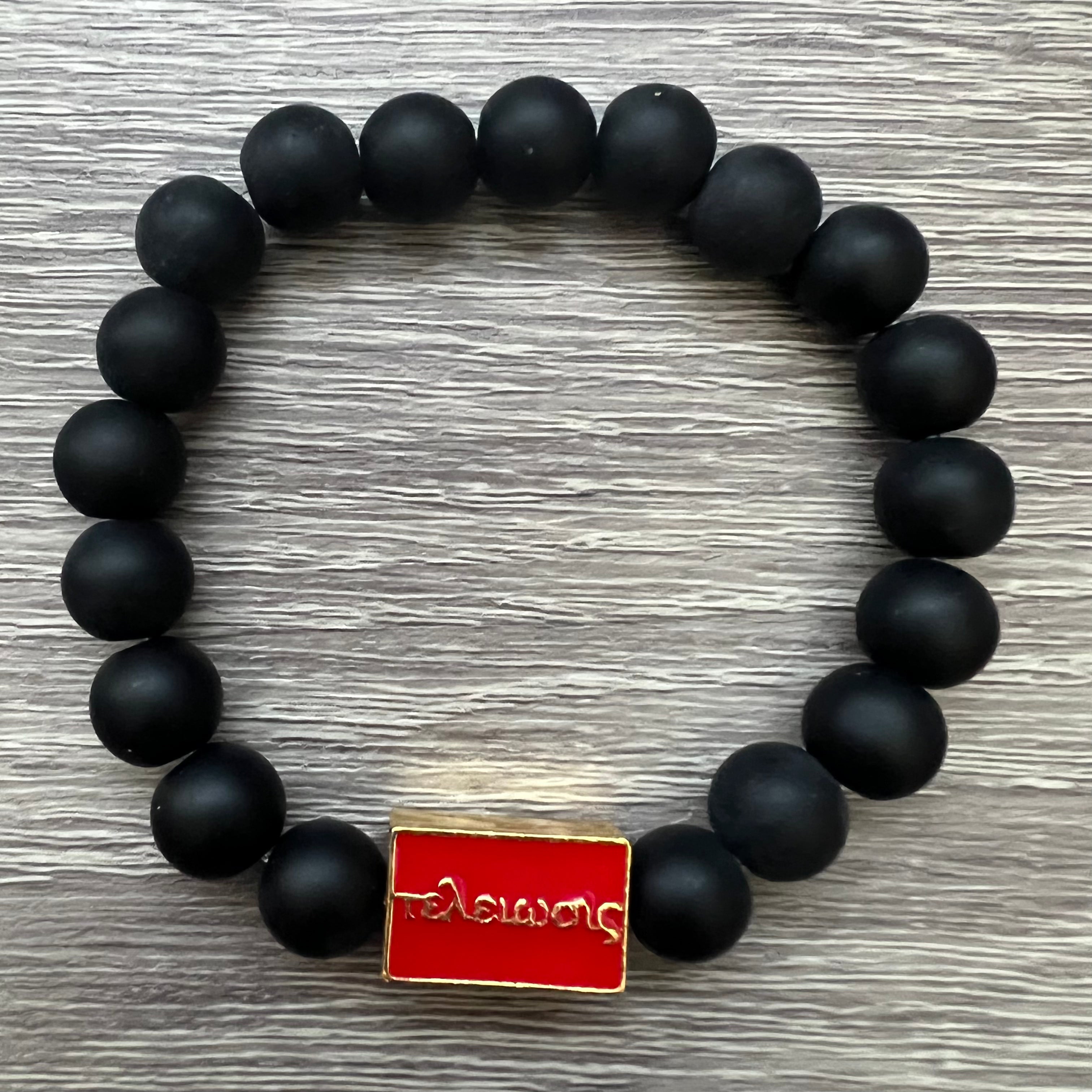Kappa Alpha Psi fraternity exclusive Glass Beaded Bracelet on elastic stretch rope; simple and elegant. Easy bracelet to slide on and off wrist. The color of amber beads may vary from bracelet to bracelet due to each bracelet being hand made from natural materials with a personal touch.