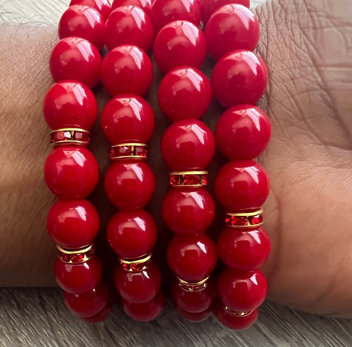 Kappa Alpha Psi fraternity exclusive Glass Beaded Bracelet on elastic stretch rope; simple and elegant. Easy bracelet to slide on and off wrist. The color of amber beads may vary from bracelet to bracelet due to each bracelet being hand made from natural materials with a personal touch.