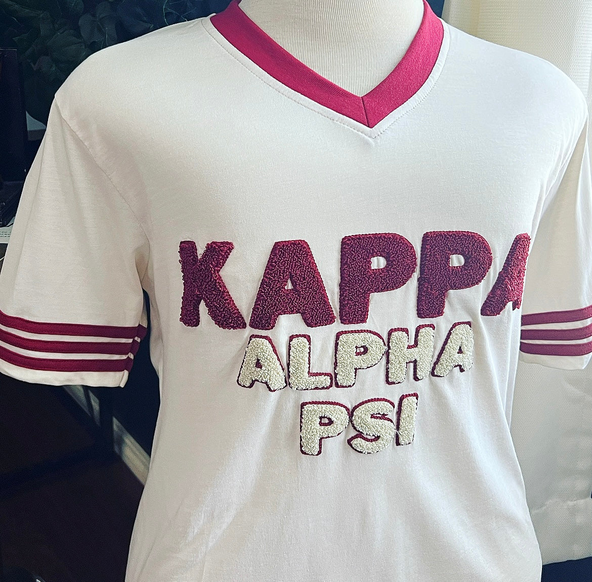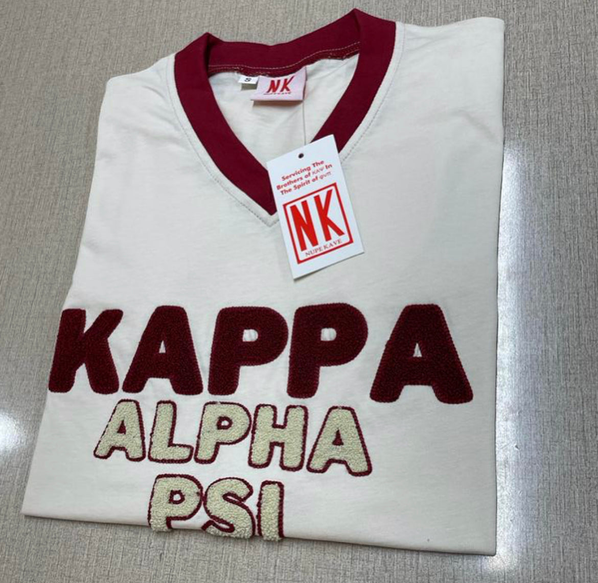 Refresh availabilityExclusive Kappa Alpha Psi Double Chenille Lettered T-shirt . This is the perfect short-sleeved shirt to wear while showing off your Kappa Alpha Psi fraternity lettering. A comfortable 100% cotton tee with a twill Greek letters embroidery across the chest give you the perfect fit. This shirt is also a perfect gift for your favorite Kappa Man.