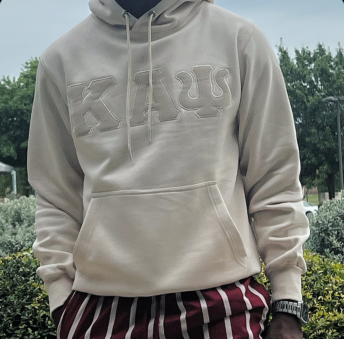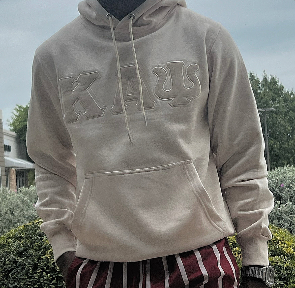 Refresh availabilityExclusive Kappa Alpha Psi Embroidery Lettered Hoodie. This is the perfect long-sleeved hoodie to wear while showing off your Kappa Alpha Psi fraternity lettering. A comfortable cotton tee with a twill Greek letters embroidery across the chest give you the perfect fit. This hoodie is also a perfect gift or your favorite Kappa Man.