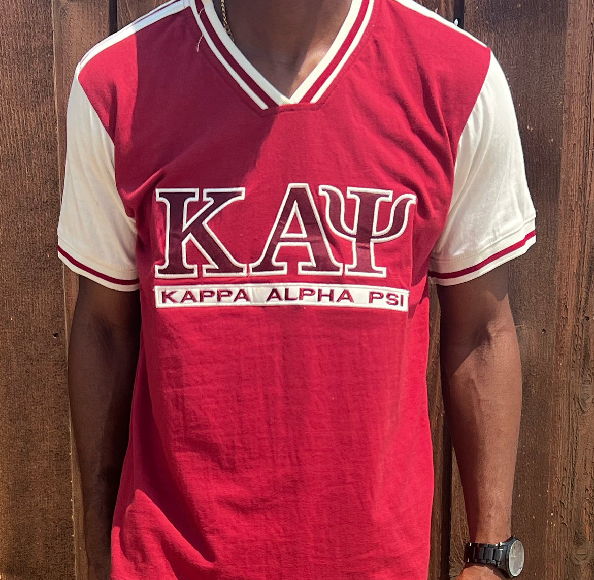 Exclusive Kappa Alpha Psi Double Stitched Appliqué Embroidery Lettered T-shirt . This is the perfect short-sleeved shirt to wear while showing off your Kappa Alpha Psi fraternity lettering. A comfortable 100% cotton tee with a twill Greek letters embroidery across the chest give you the perfect fit. This shirt is also a perfect gift for your favorite Kappa Man.