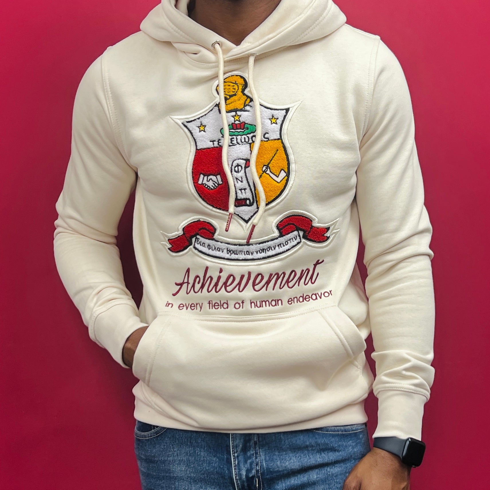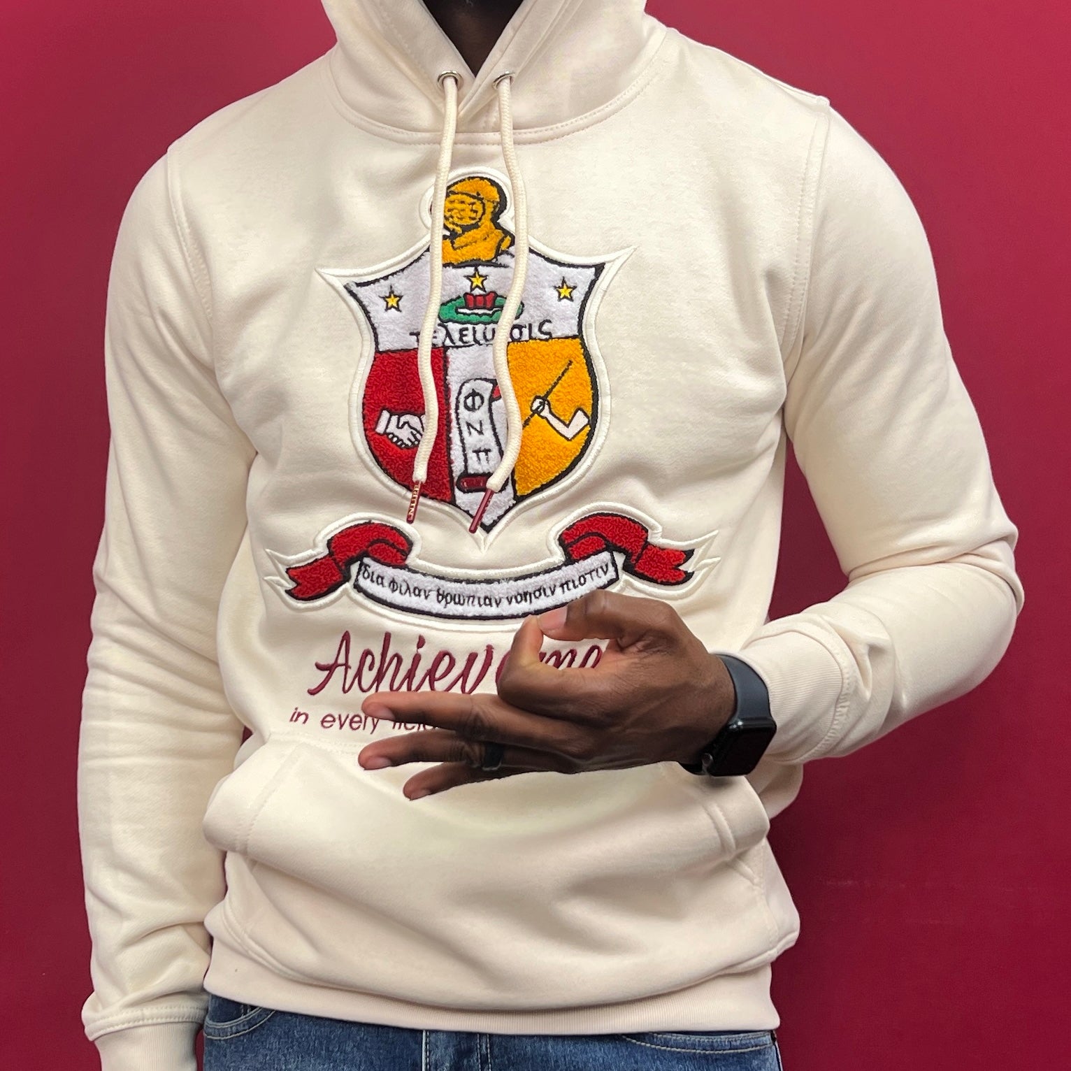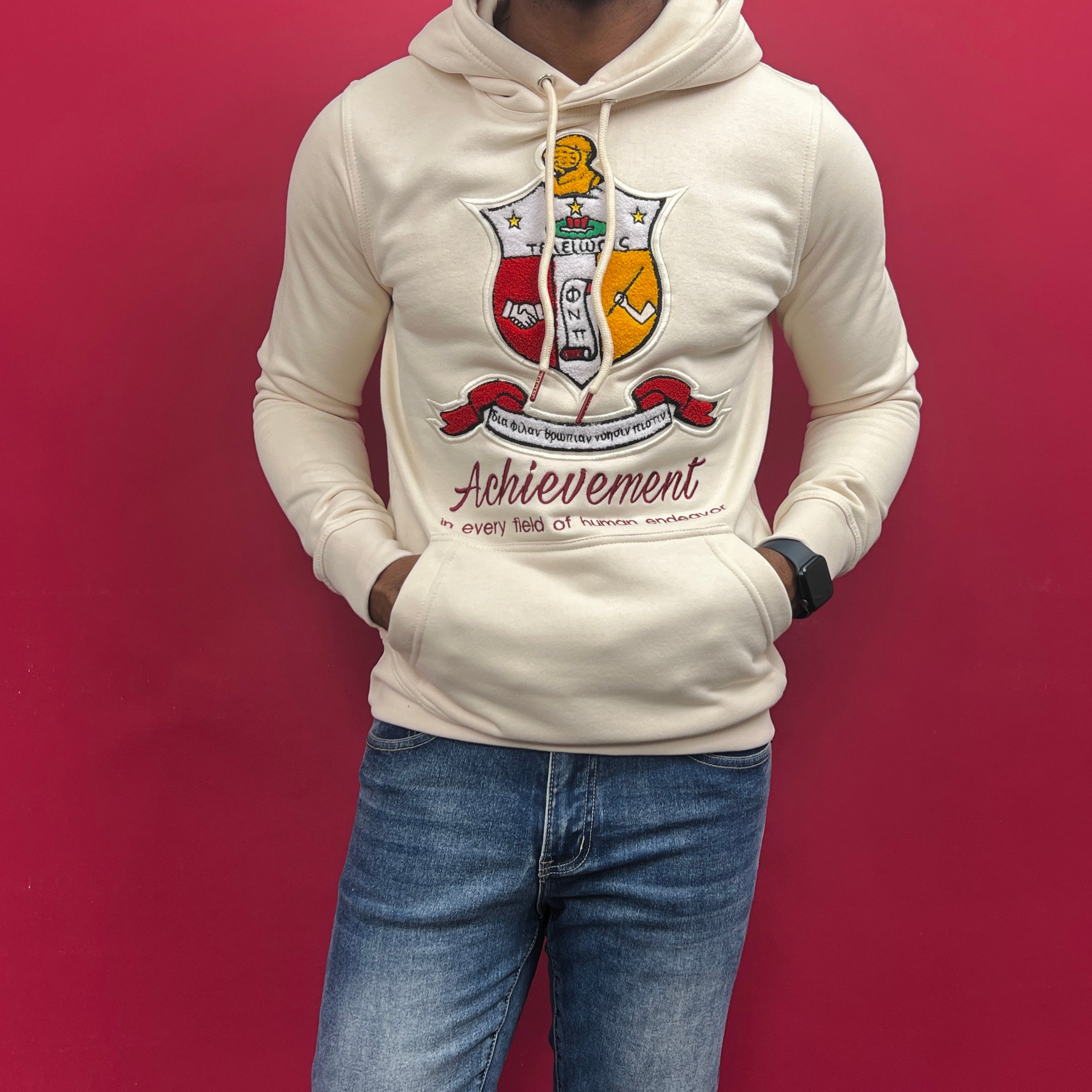 The cream color adds a touch of sophistication to your wardrobe and is perfect for any occasion. With its comfortable fit and classic design, this hoodie is sure to become a staple in your collection. Show off your pride and support for Kappa Alpha Psi with this stylish and functional piece of clothing.