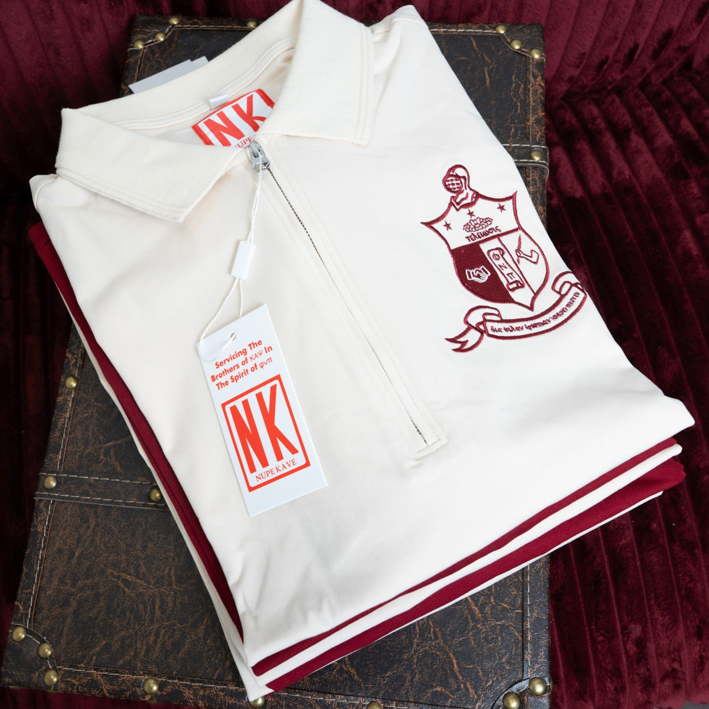 Refresh availabilityThe Kappa Alpha Psi Iconic Coffee Cream Polo Shirt by Nupe Kave is a stylish and classic addition to any Nupe’s wardrobe. Made from a blend of spandex and cotton, this Polo shirt offers a comfortable and regular fit. The solid cream color and collared neckline make it versatile for both casual and semi-casual occasions, while the short sleeves are perfect for the spring and summer season. With its iconic Kappa Alpha Psi design, this polo shirt is a must-have for any member of Kappa Alpha Psi fraternity Inc.