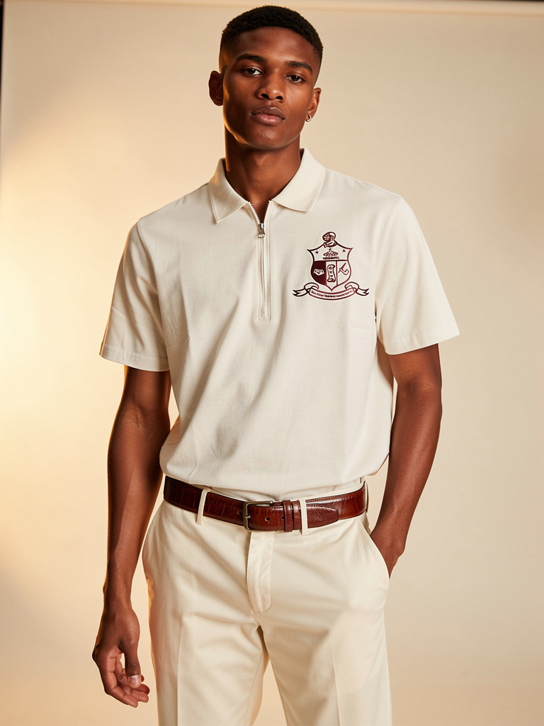 The Kappa Alpha Psi Iconic Spring Wine Polo Shirt by Nupe Kave is a stylish and classic addition to any Nupe’s wardrobe. Made from a blend of spandex and cotton, this Polo shirt offers a comfortable and regular fit. The solid wine color and collared neckline make it versatile for both casual and semi-casual occasions, while the short sleeves are perfect for the spring and summer season. With its iconic Kappa Alpha Psi design, this polo shirt is a must-have for any member of Kappa Alpha Psi fraternity Inc.