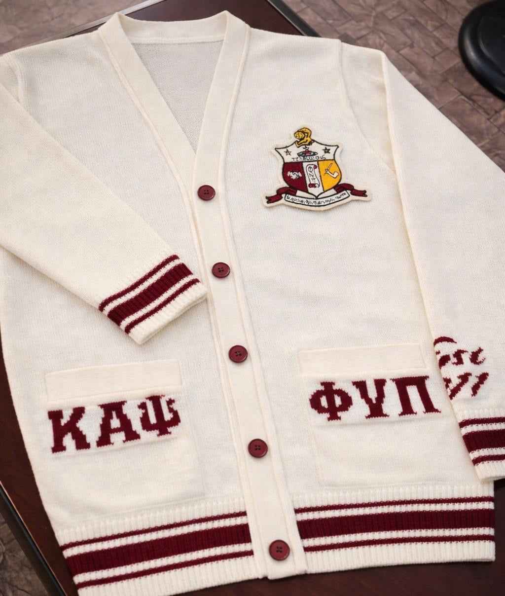 Refresh availabilityThis cardigan holds significance as a symbol of pride and belonging for members of the Kappa Alpha Psi Fraternity Inc. showcasing dedication to Kappa Alpha Psi values and traditions. With its classic design and high-quality construction, this cardigan is a perfect addition to any Nupe’s collection. Whether worn for special events or displayed as part of a collection, this cardigan serves as a reminder of the lasting impact of KAPsi.