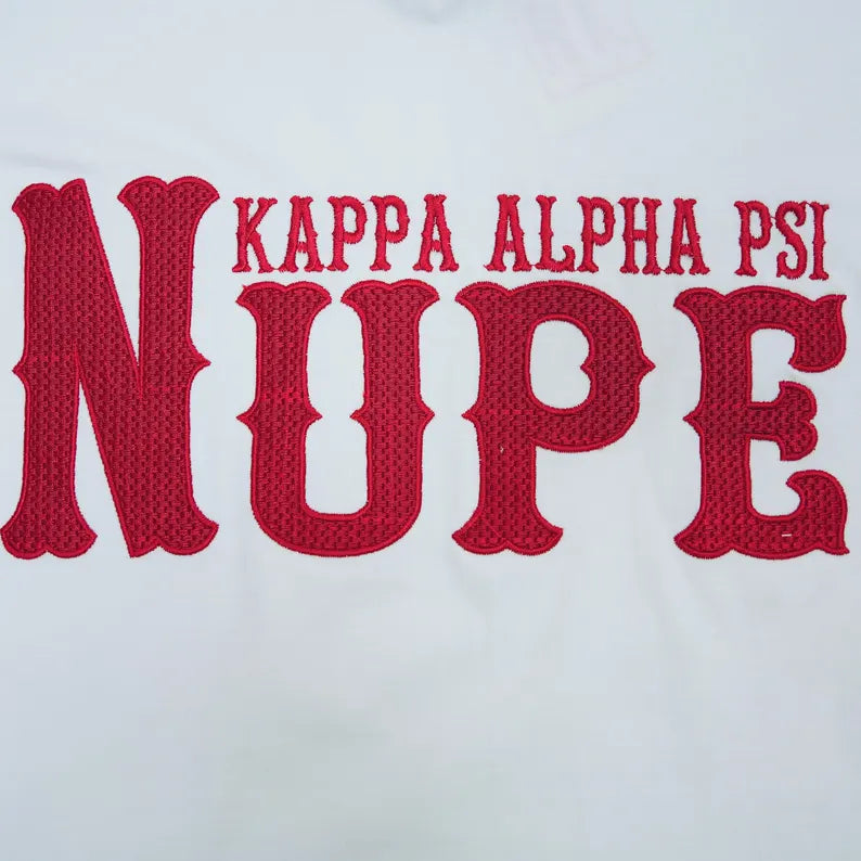 This Kappa Alpha Psi Premium NUPE white T-Shirt is a must-have for any member of the organization. Made of high-quality cotton material, this regular-fit T-shirt features a V neck and short sleeves, making it perfect for everyday wear. The shirt comes in a white color with a solid pattern, and the Kappa Alpha Psi brand is prominently displayed on the front.