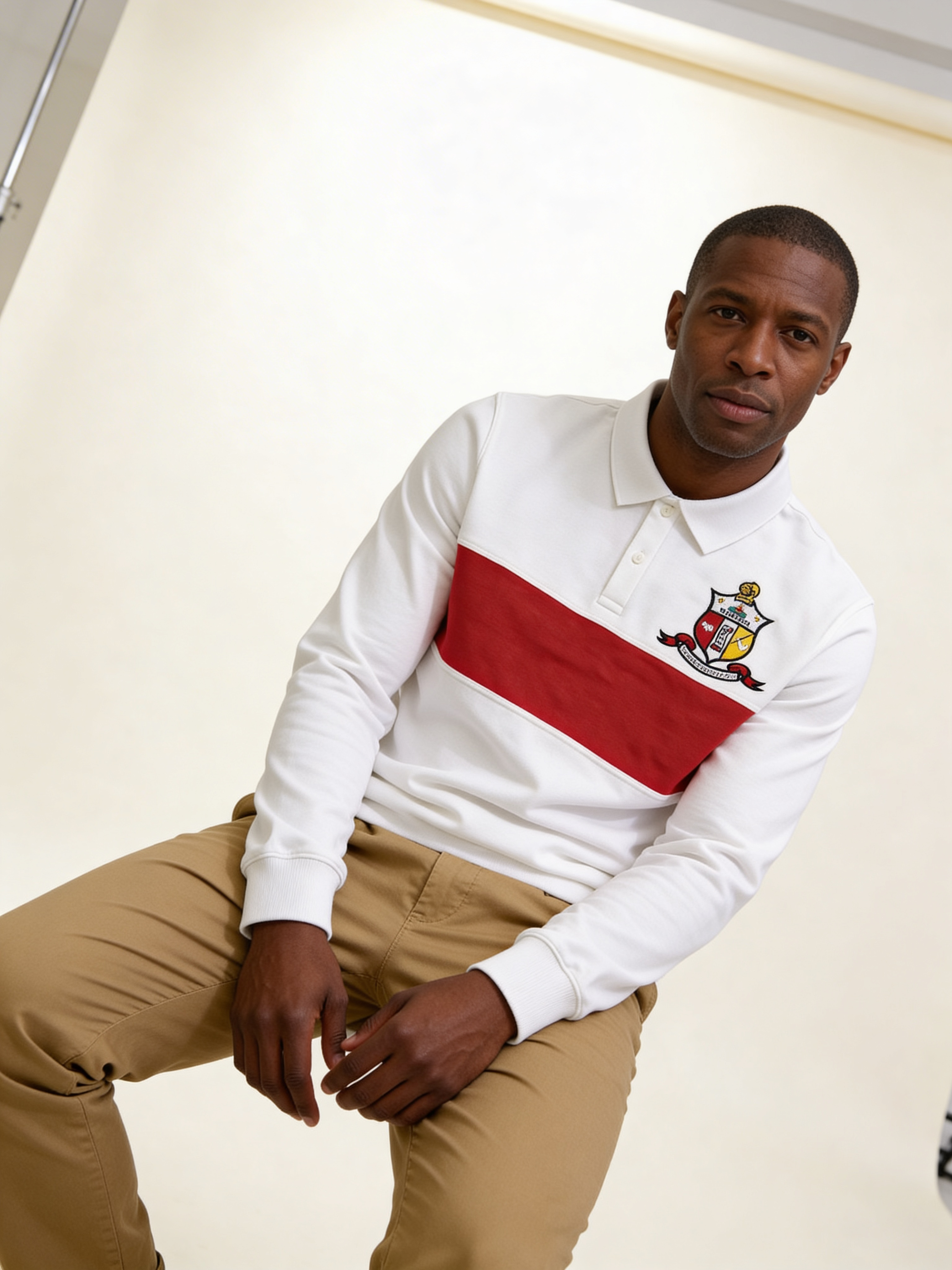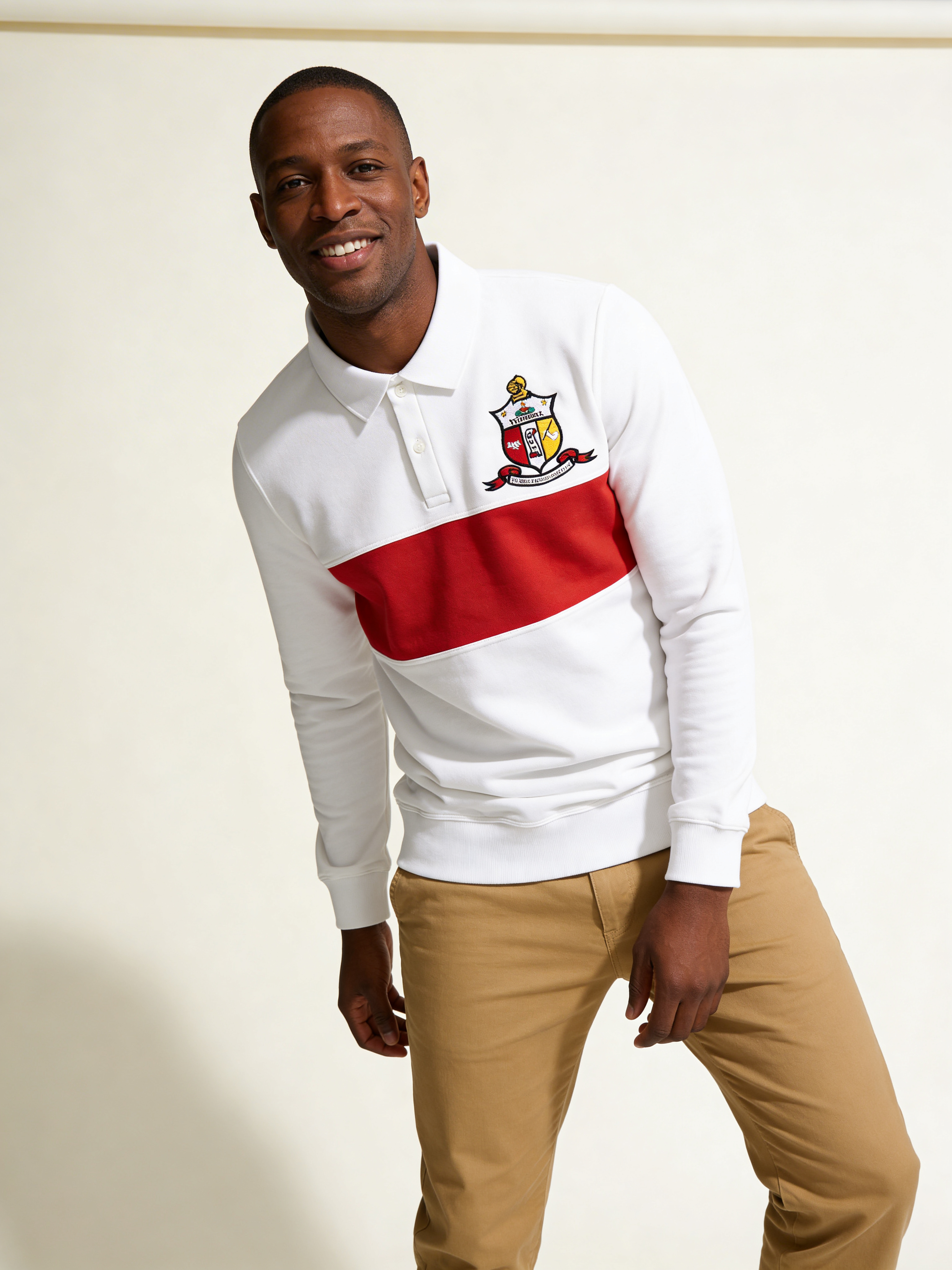 Kappa Alpha Psi Off White and Red Half Zipper Shield Sweatshirt