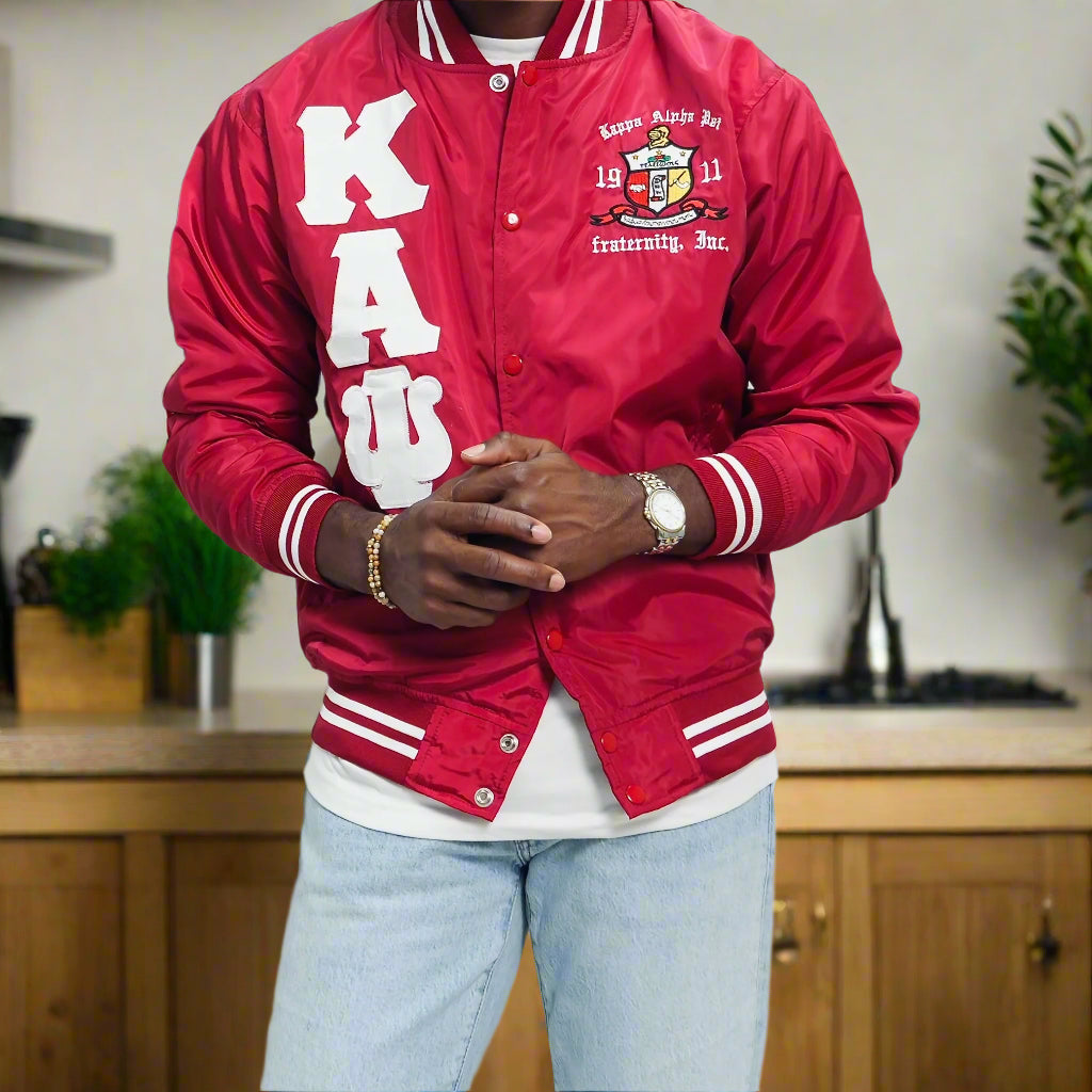 Refresh availabilityCheck out our Kappa Alpha Psi satin jacket selection for the very best in unique design. This Kappa Alpha Psi Baseball Nylon Jacket shows the fraternity Shield embroidered on left chest and Greek letters on right to create style and unique comfort in wear. Quality beyond imagination.