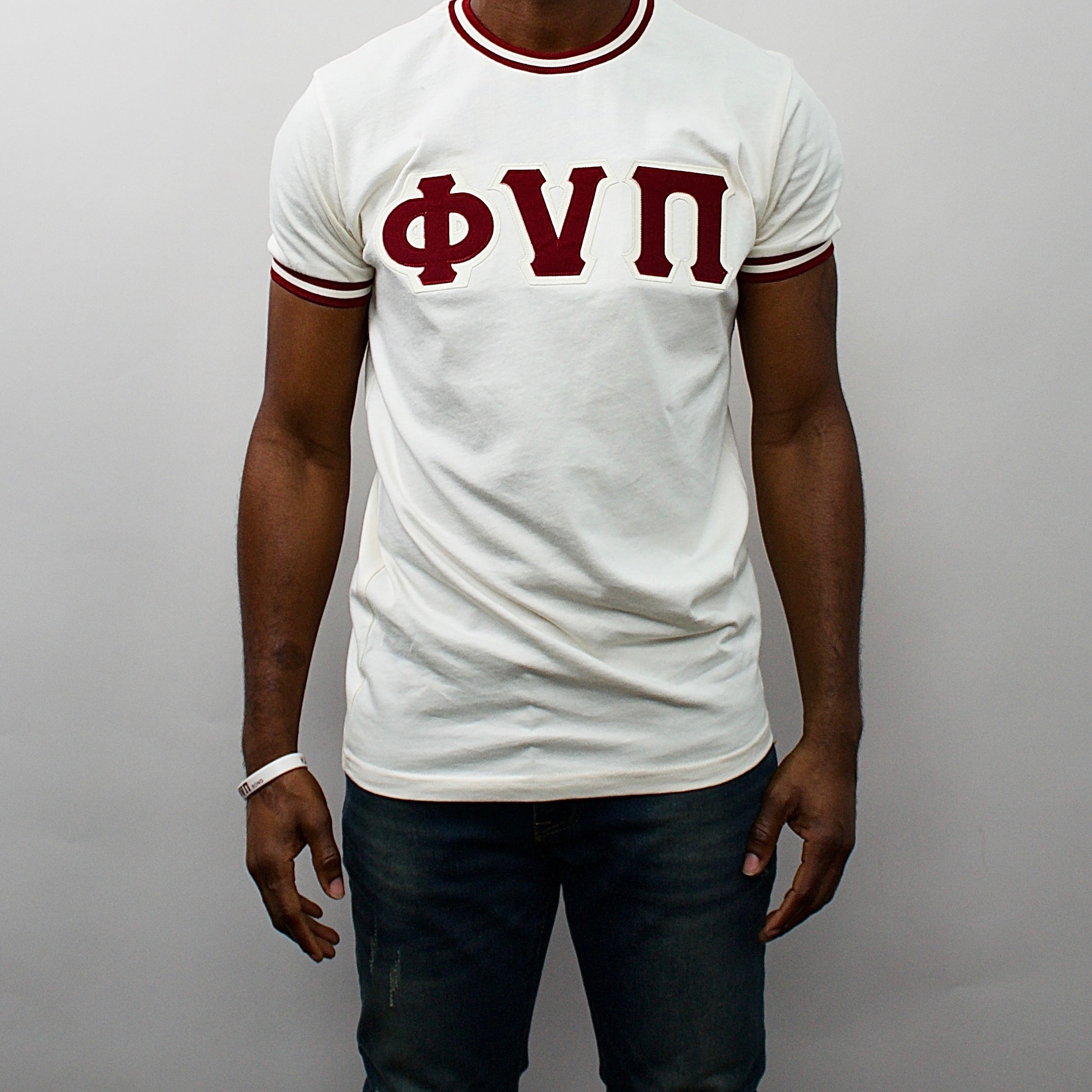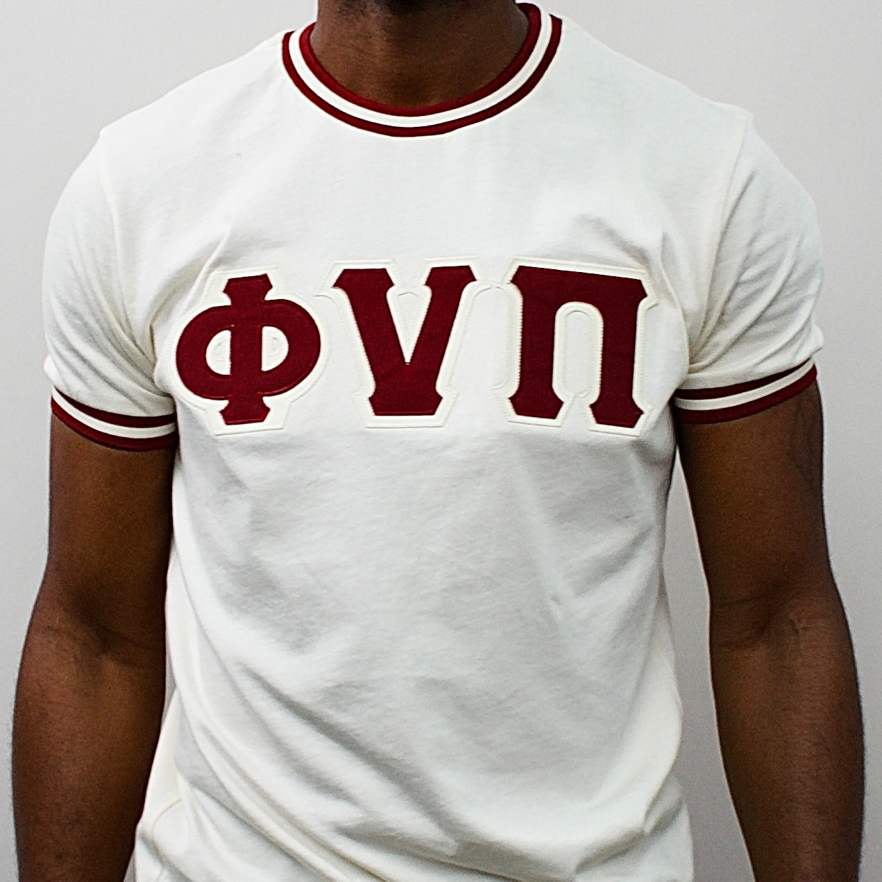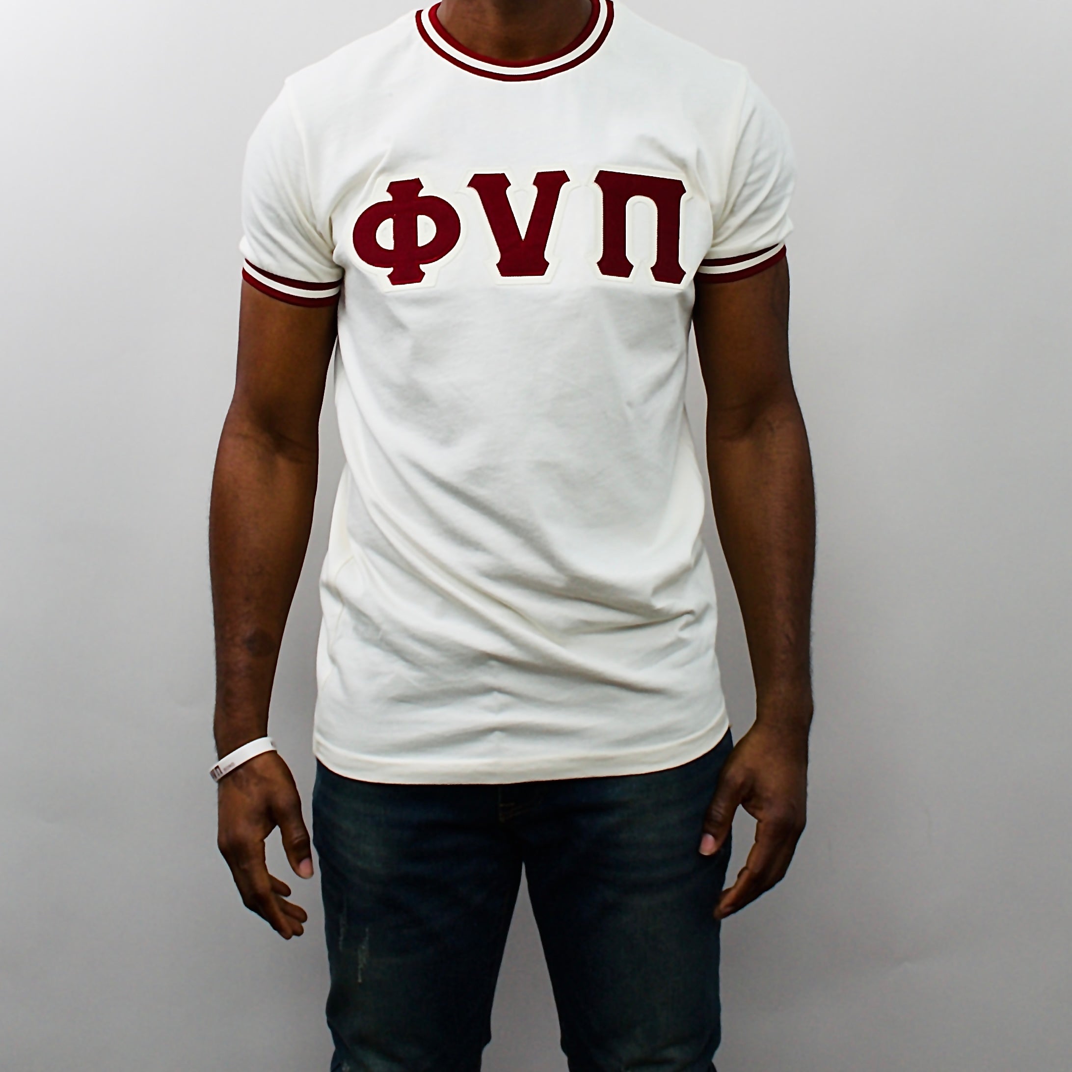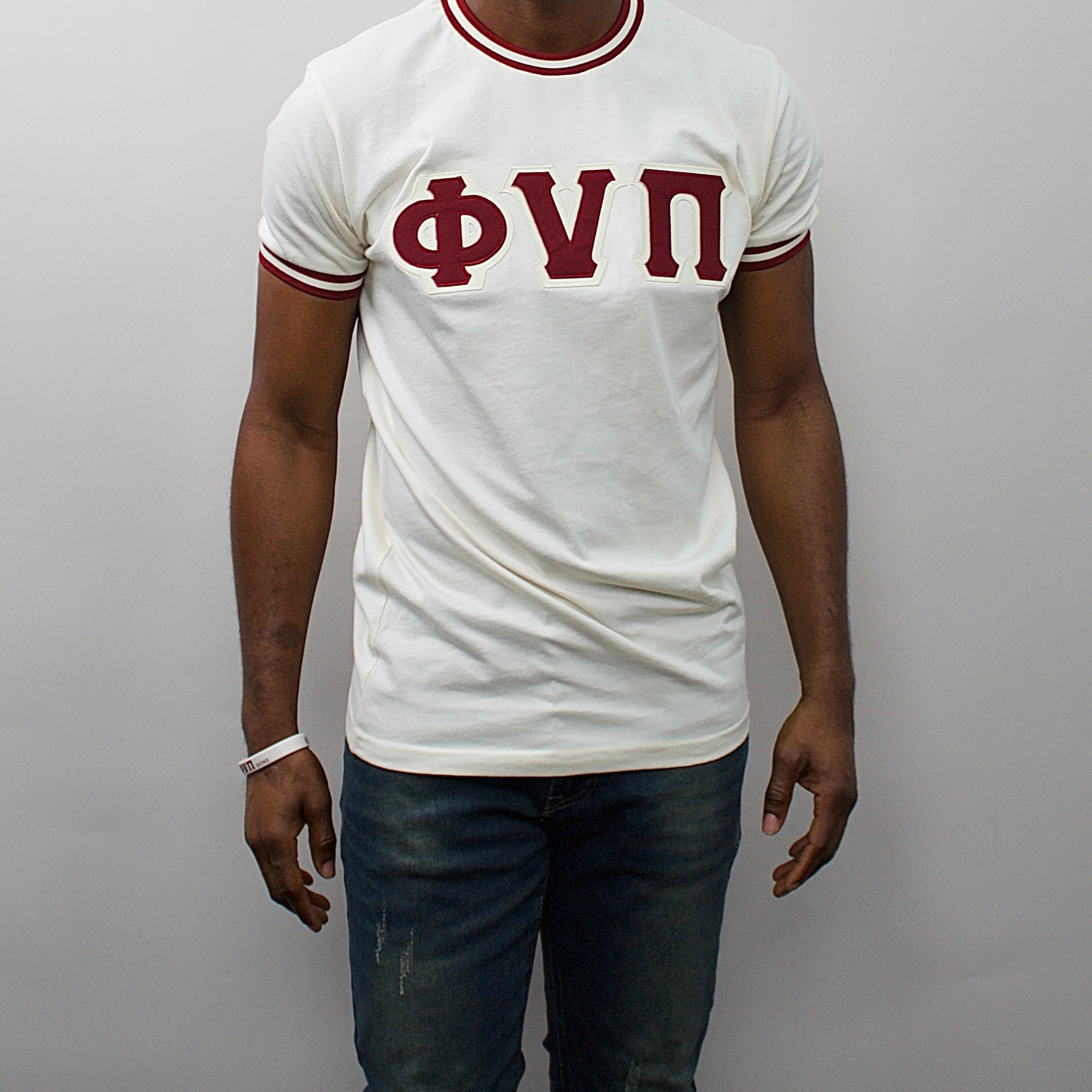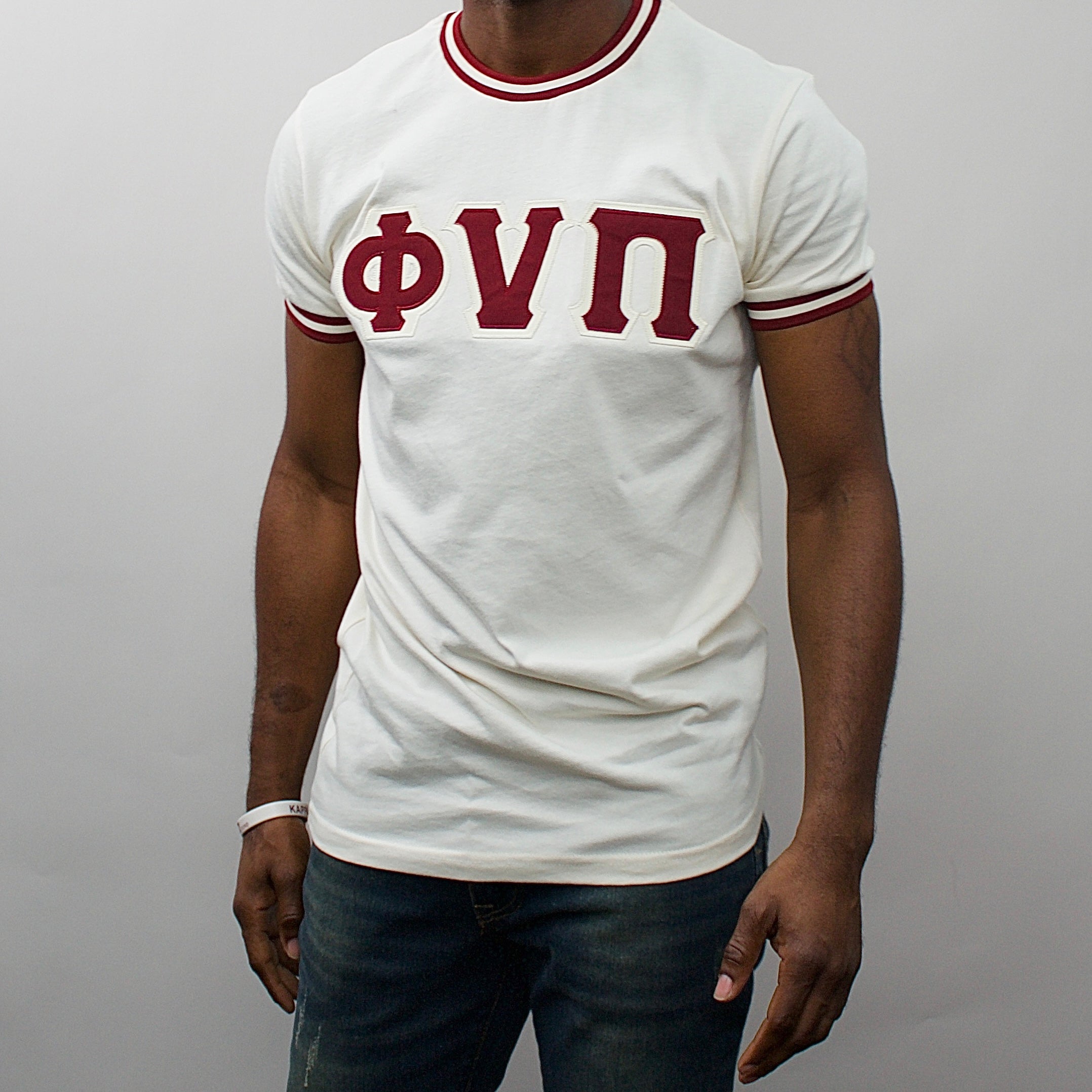 Phi Nu Pi Embroidery T Shirt Cream and Crimson
